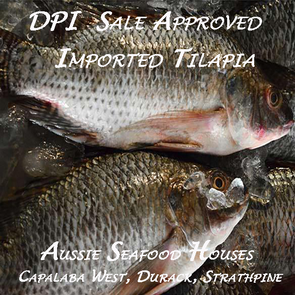 Whole Tilapia Imported … A superb quality and great eating fish, steamed or baked …  Sold in Queensland  with the Approval of  DPI in Queensland … At all 3 Aussie Seafood Houses ..Capalaba West, Durack, Strathpine Stores Open 7 Days a Week .. Everything in Seafood and MORE